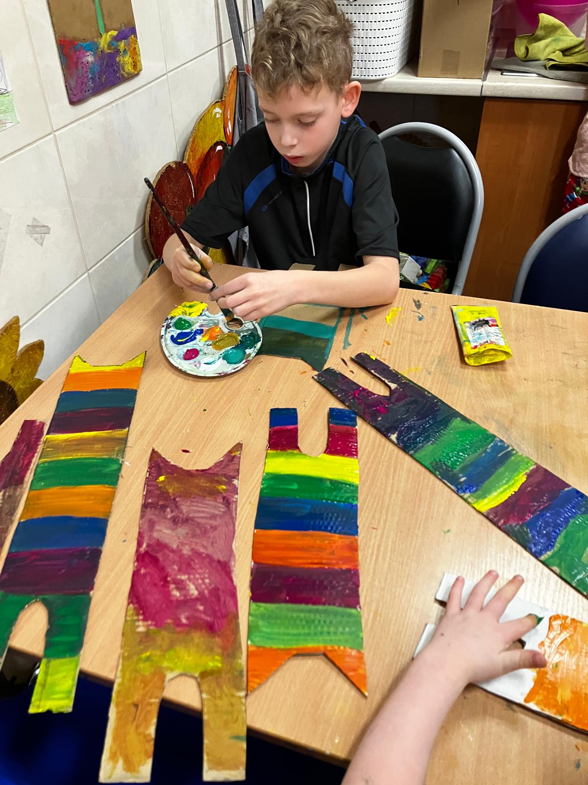 Międzynarodowy Dzień Kota. w związku z tym my również postanowiliśmy świętować. Niestety nie mamy swoich kotów więc je sobie stworzyliśmy. Wystarczyła tektura z niepotrzebnych pudełek, nożyczki, farby, a jako, że w tym roku jest sroga zima to jeszcze wełna, na ciepłe sweterki dla naszych mruczusiów.