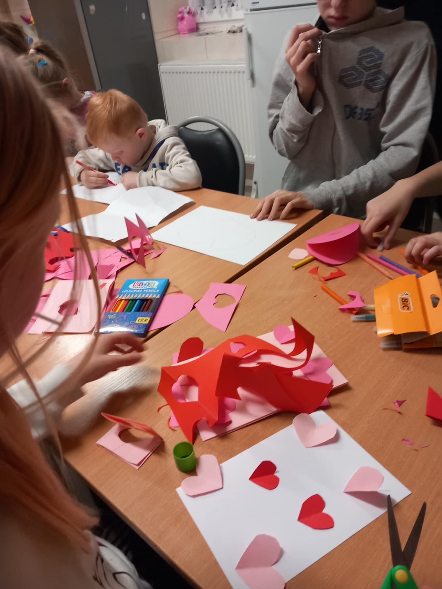 Wychowankowie brali udział w zajęciach tematycznych związanych z Walentynkami oraz Dniem Kota. Podczas zajęć plastycznych z dużym zaangażowaniem przygotowywali kartki walentynkowe, rozwijając swoją kreatywność oraz zdolności manualne. Była to również okazja do rozmów o życzliwości, przyjaźni i okazywaniu sympatii innym osobom.