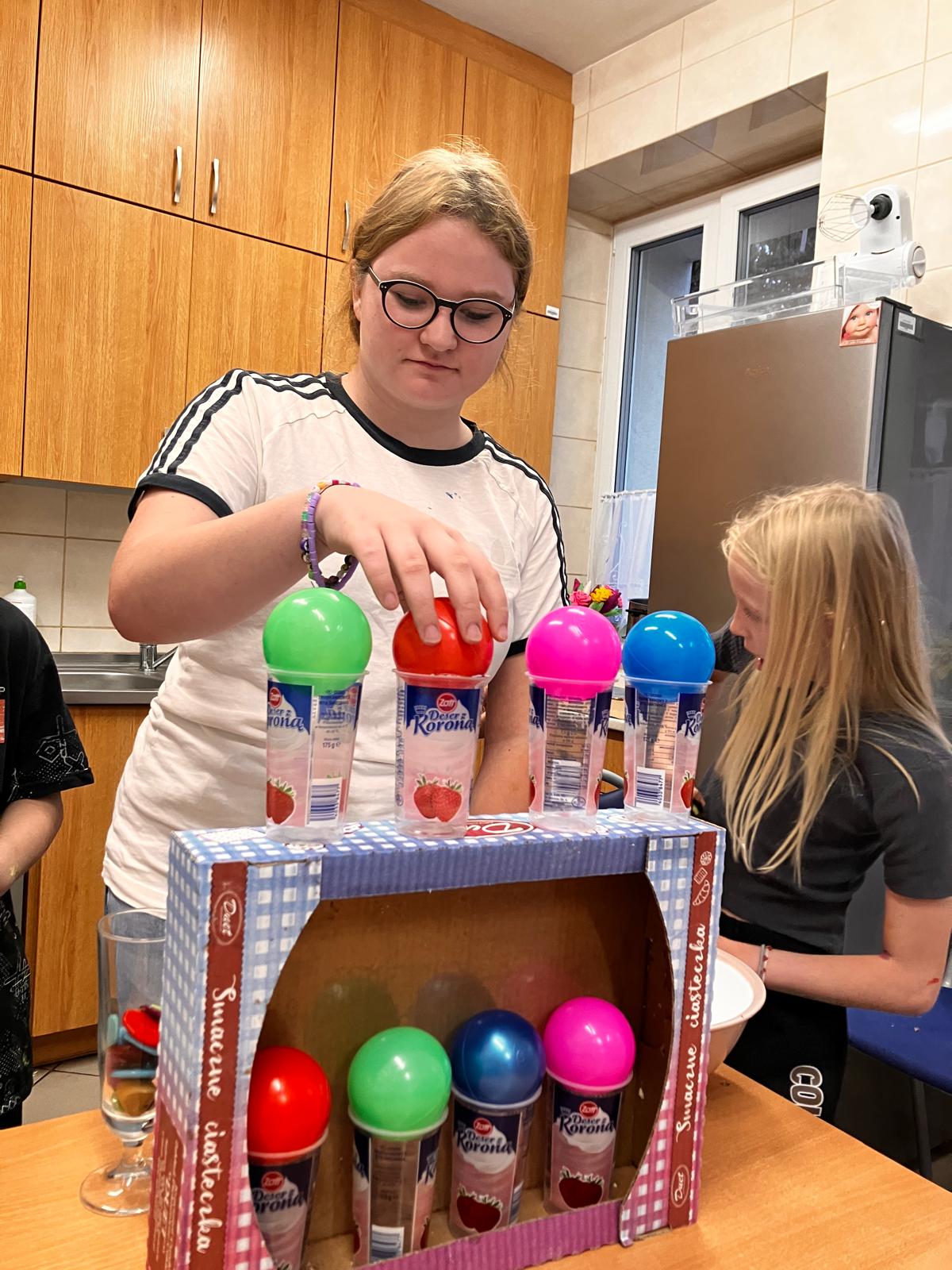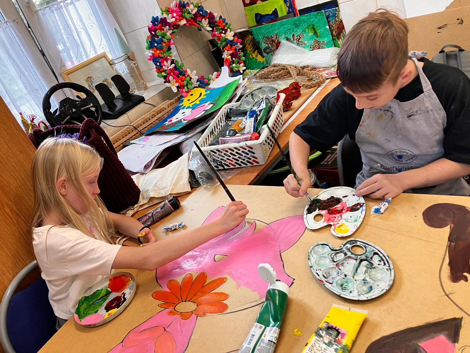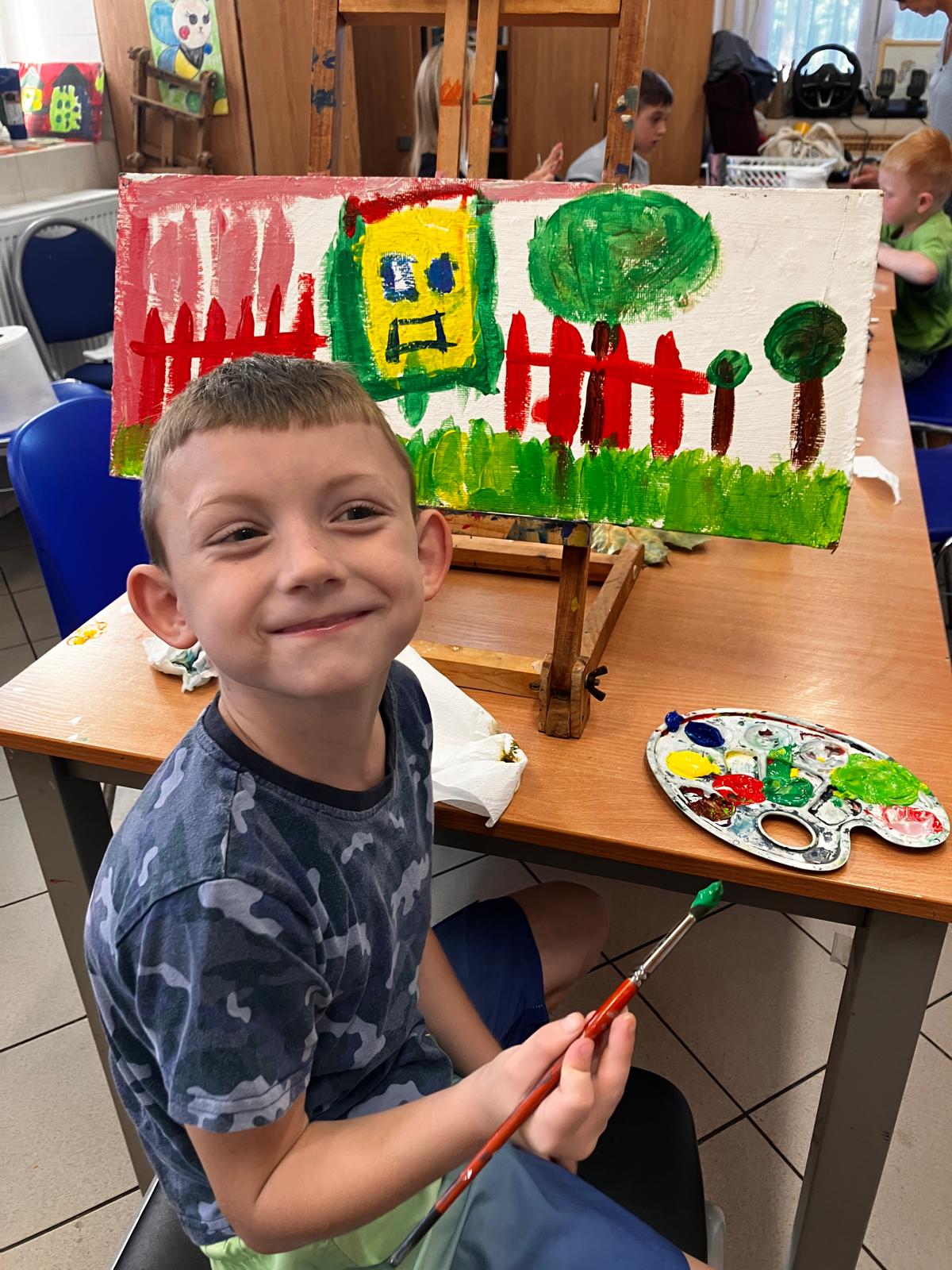 Podczas cyklu zajęć nasi wychowankowie wykazali się ogromną kreatywnością i zaangażowaniem! Malowali własne koszulki farbami, stroili zabawne miny do zdjęć oraz bawili się w muzyczny quiz. Degustowali też samodzielnie przygotowane, zdrowe lody truskawkowe i tworzyli spersonalizowane pudełka na skarby. Nie zabrakło również artystycznych emocji – uczestnicy malowali bajkowe obrazy na płótnie, a maluszki tworzyły swoje pierwsze dzieła.