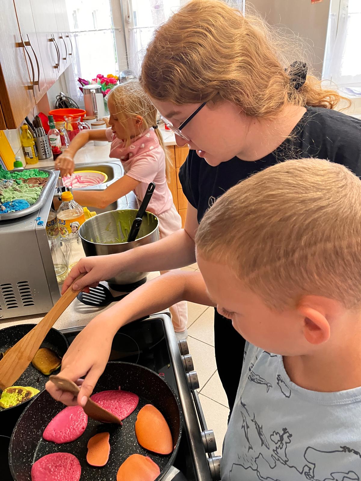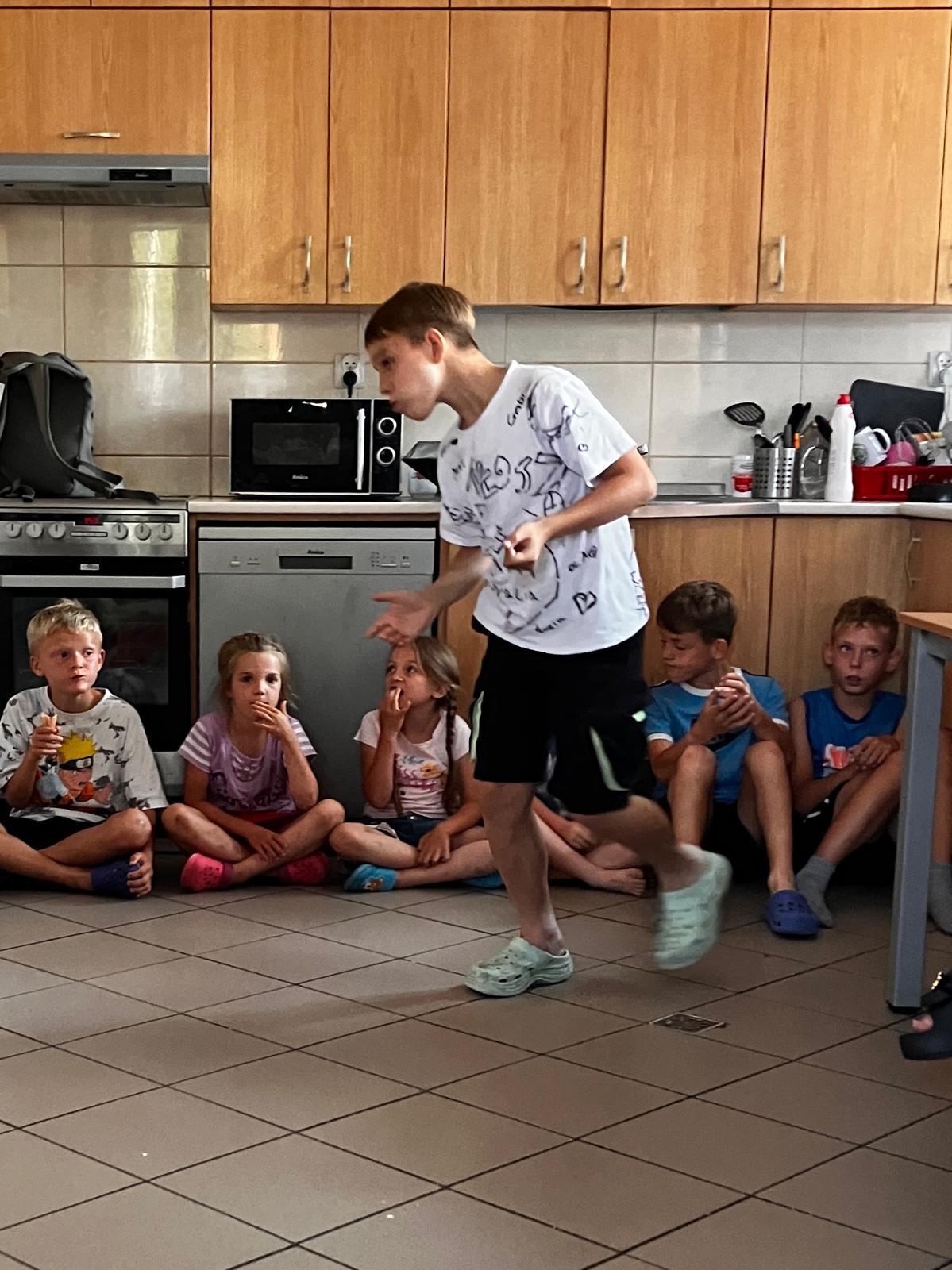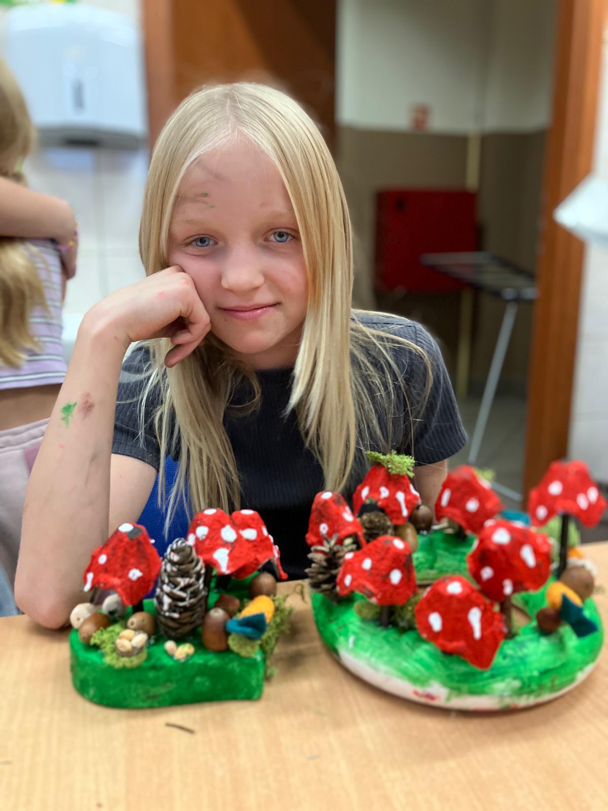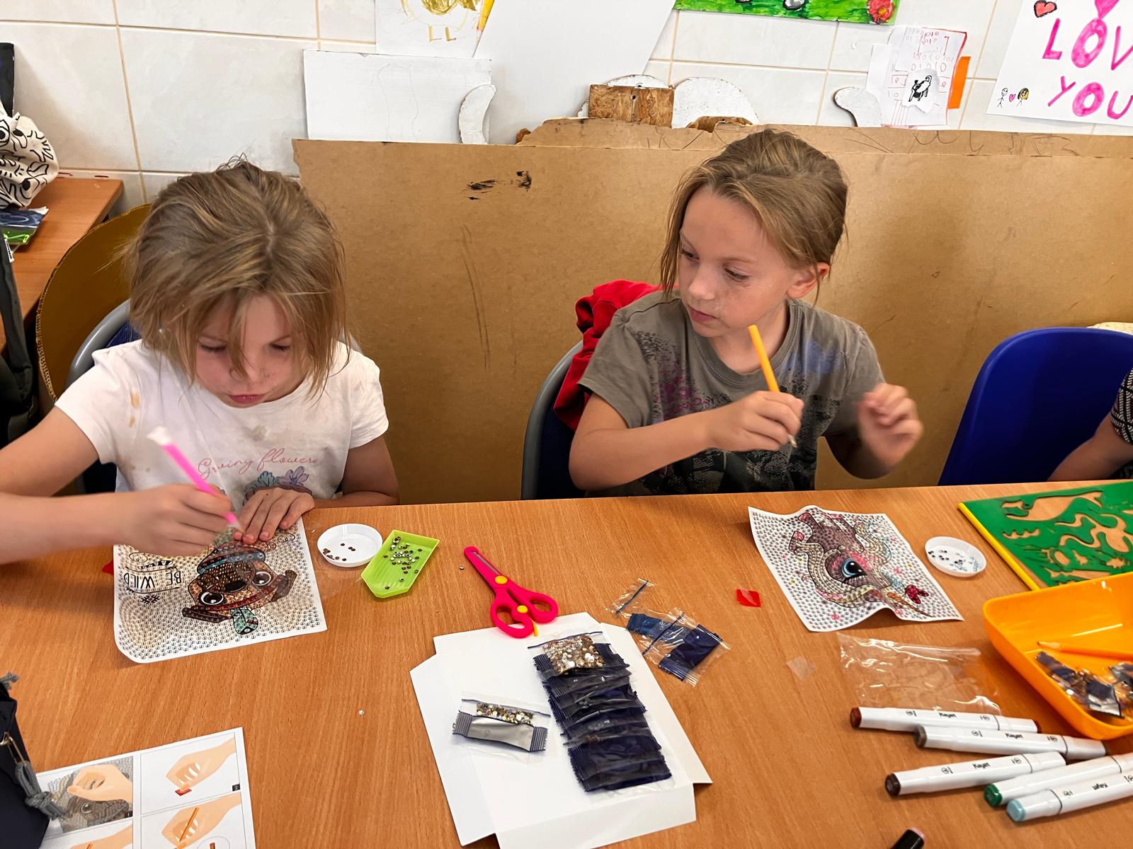 Podczas cyklu zajęć nasi wychowankowie wykazali się ogromną kreatywnością i zaangażowaniem! Malowali własne koszulki farbami, stroili zabawne miny do zdjęć oraz bawili się w muzyczny quiz. Degustowali też samodzielnie przygotowane, zdrowe lody truskawkowe i tworzyli spersonalizowane pudełka na skarby. Nie zabrakło również artystycznych emocji – uczestnicy malowali bajkowe obrazy na płótnie, a maluszki tworzyły swoje pierwsze dzieła.
