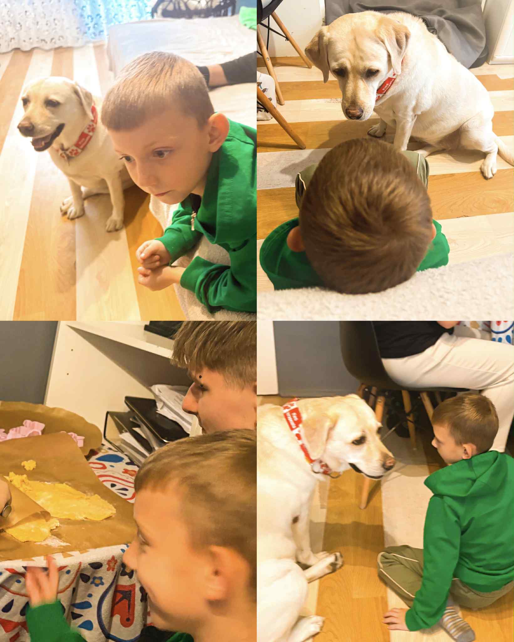 Dzisiejsza sesja dogoterapii miała charakter terapeutyczno – kulinarnej aktywności, w której dzieci uczestniczyły w wypieku kruchych ciasteczek w kształcie psów różnych ras. Obecność psa terapeutycznego pełniła funkcję mediatora emocjonalnego oraz wspierając proces redukcji napięcia psychofizycznego oraz wzmacniając motywację do działania. Kontakt ze zwierzęciem sprzyjał aktywizacji procesów poznawczych i społecznych, ułatwiając koncentrację, koordynację ruchową i komunikację interpersonalną. Pies poprzez swoja obecność i interakcję, stanowił element medycznego wsparcia niefarmakologicznego, zwiększając poczucie bezpieczeństwa i poprawiając dobrostan psychiczny dzieci.