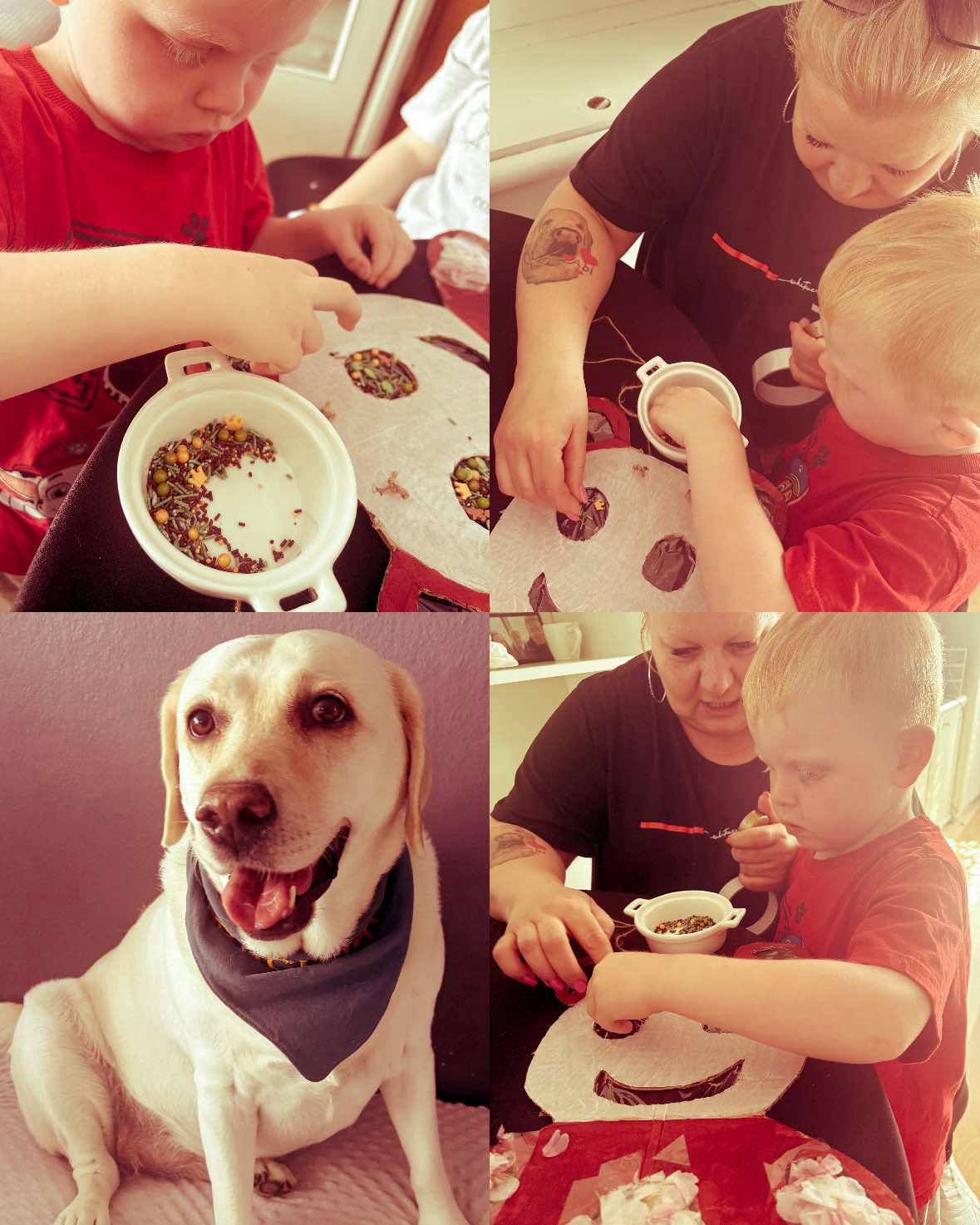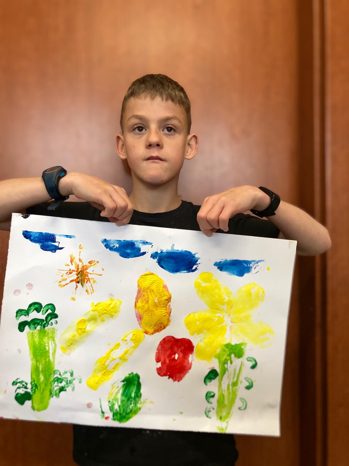 W drugiej części spotkania przenieśliśmy się w świat plastyki – tym razem nie za pomocą tradycyjnych pędzli, ale… owocowo-warzywnych stempli! Marchewki, jabłka, selery, papryki i inne pyszności zamieniły się w narzędzia twórczej ekspresji. Maczane w farbie, odciskały się na papierze, tworząc niezwykłe wzory i kolorowe kompozycje. To był świetny sposób na połączenie stymulacji sensorycznej, zabawy oraz rozwijania kreatywności.