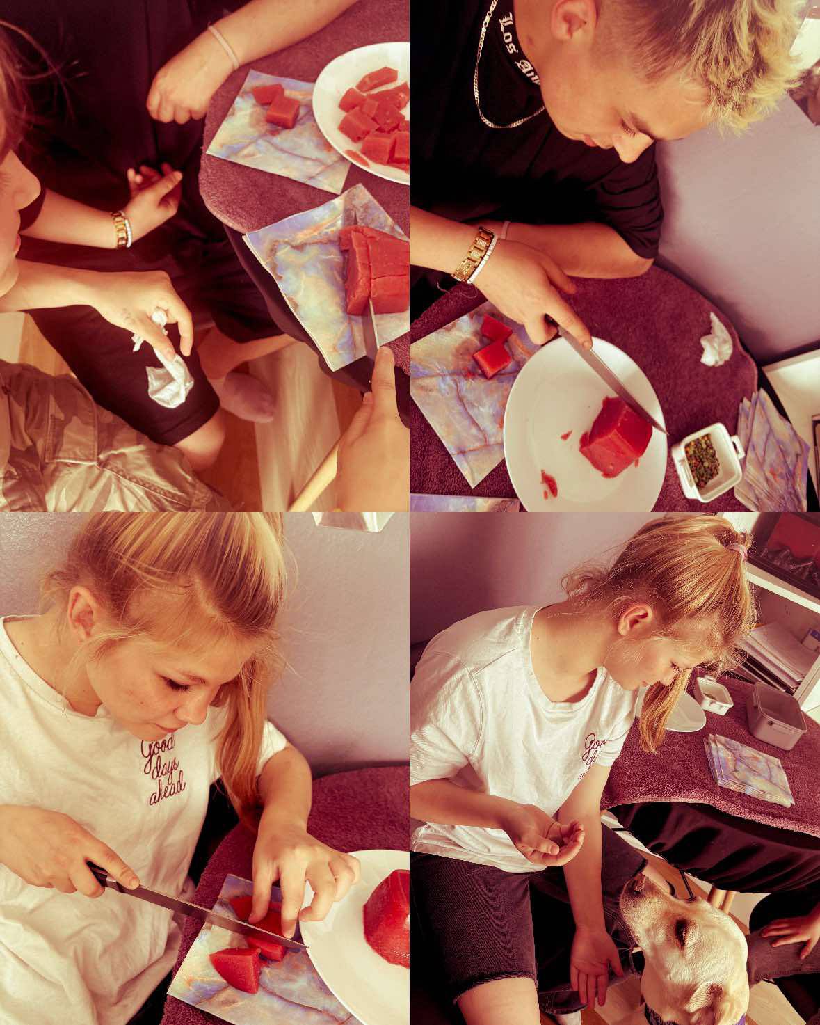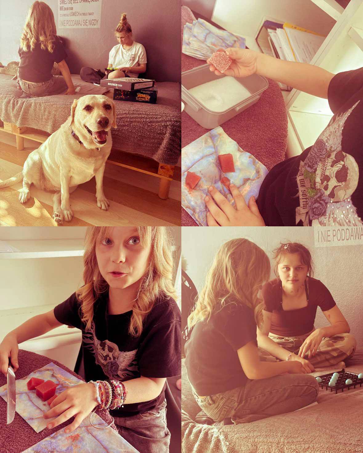 Podczas dzisiejszych zajęć z terapii zajęciowej nasi wychowankowie mieli okazję pobudzić zmysły w wyjątkowy sposób. Rozpoczęliśmy od zabawy „Pokarmowa zgaduj-zgadula” – z zamkniętymi oczami uczestnicy próbowali rozpoznać przygotowane wcześniej produkty spożywcze. Na talerzach pojawiły się zarówno słodkie przysmaki, jak i różnorodne owoce i warzywa. Było trochę śmiechu, trochę zaskoczeń i mnóstwo radości z trafionych odpowiedzi!