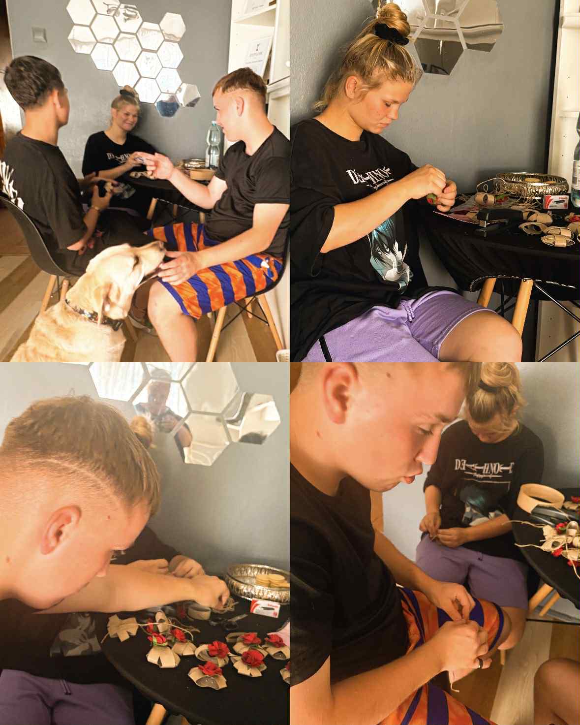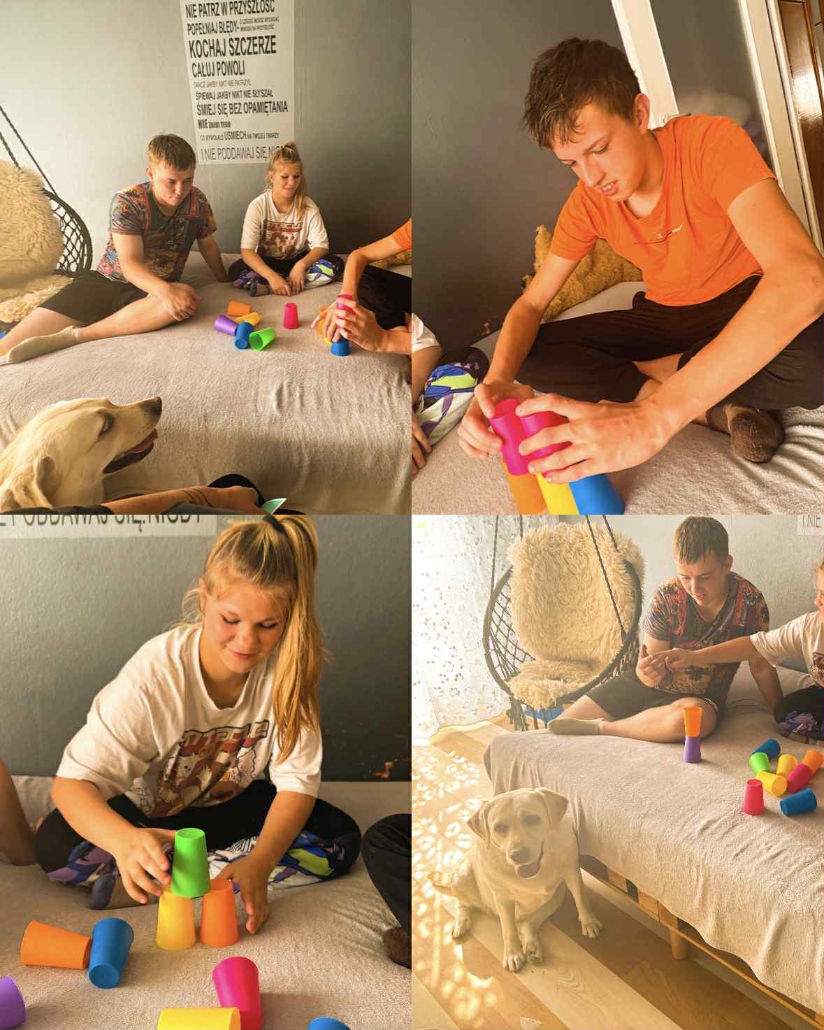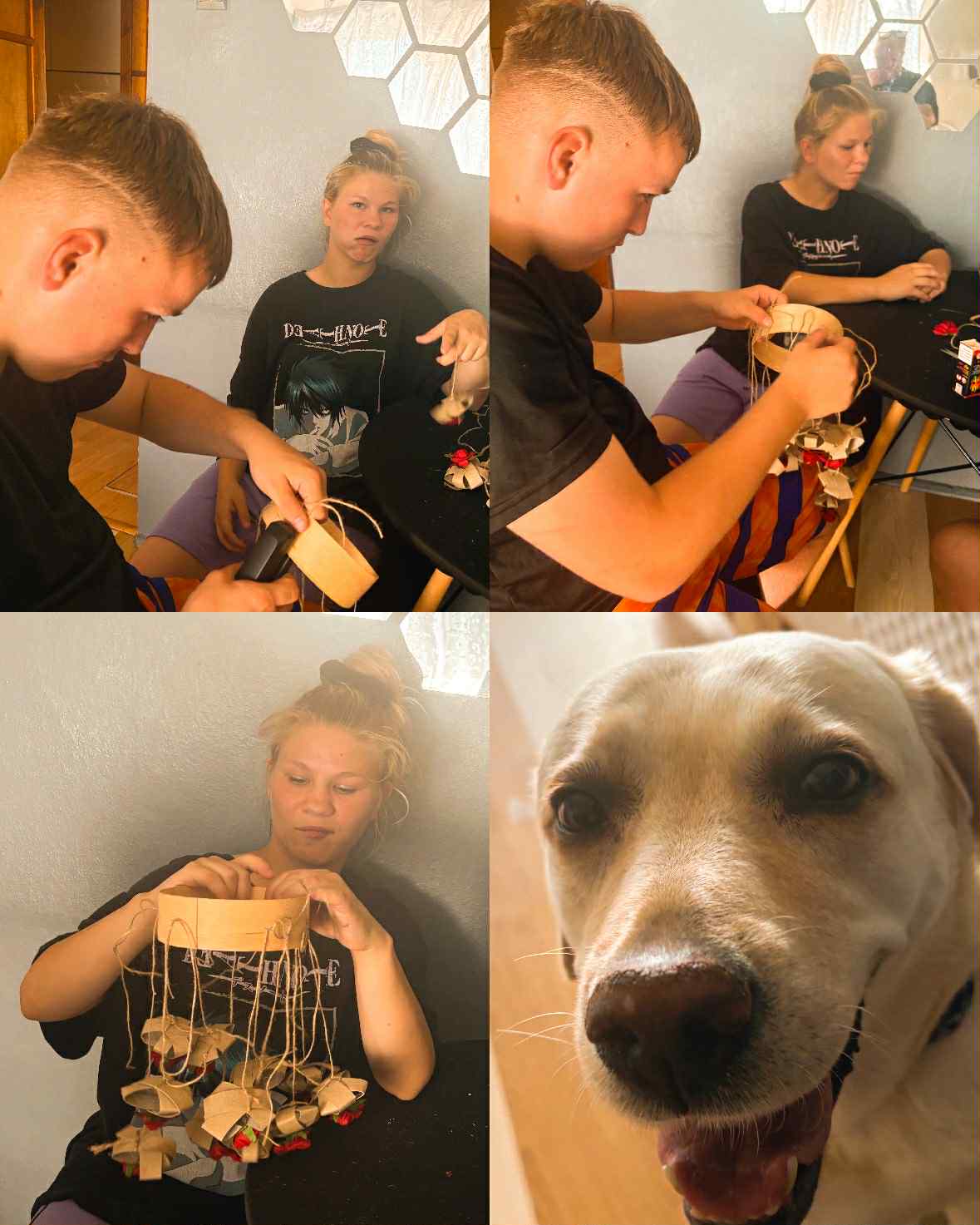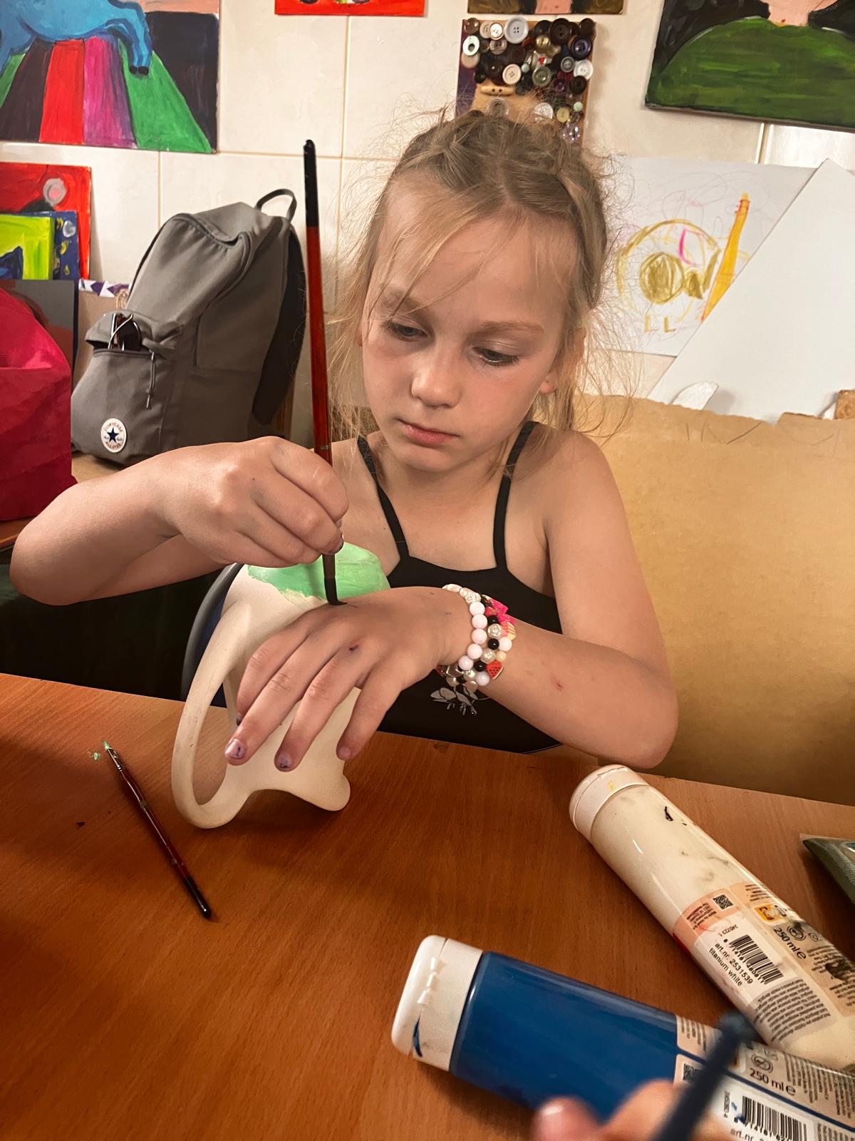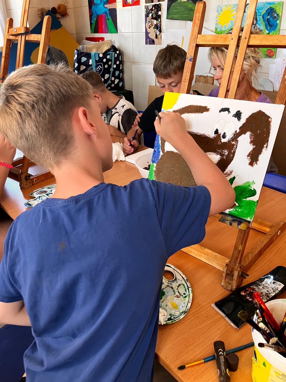 Dzisiejsza sesja dogoterapii miała charakter twórczo – terapeutyczny i była ukierunkowana na wspieranie procesów integracji sensorycznej, wzmacnianie kompetencji społecznych oraz stymulowanie motoryki małej poprzez działalność manualną. Uczestnicy wykonali indywidualne prace plastyczne w postaci łapaczy snów, co stanowiło element arteterapii wspierającej wyrażanie emocji oraz redukcję napięcia psychofizycznego.