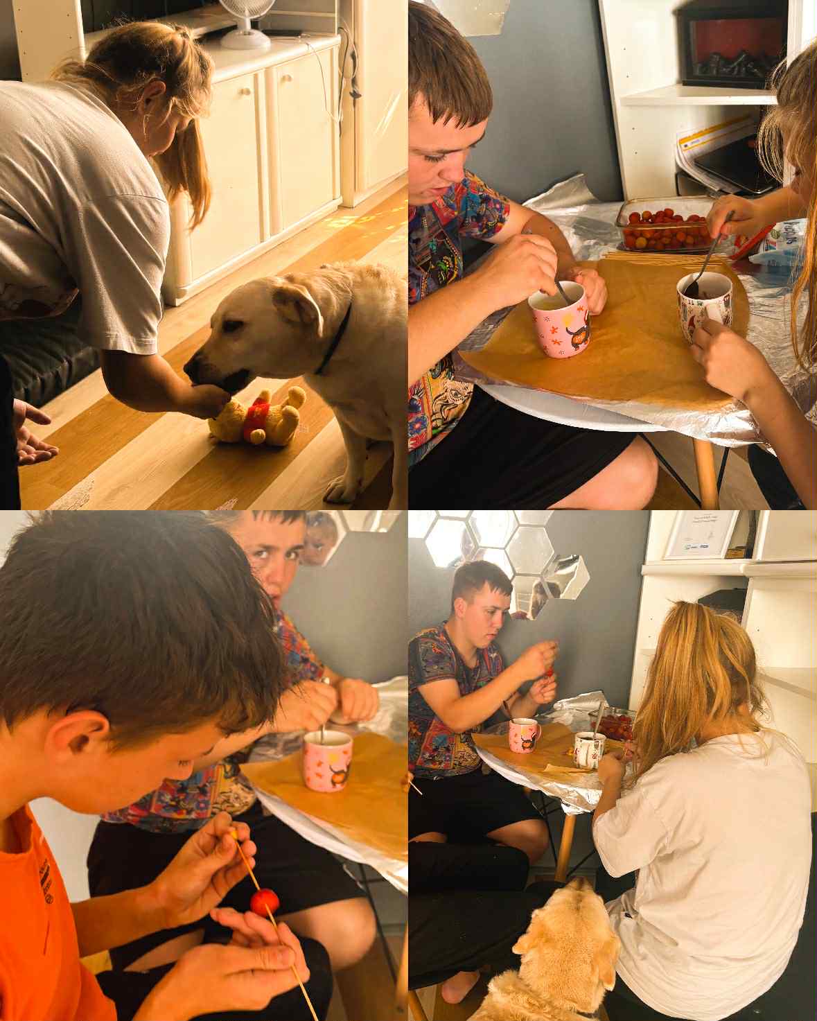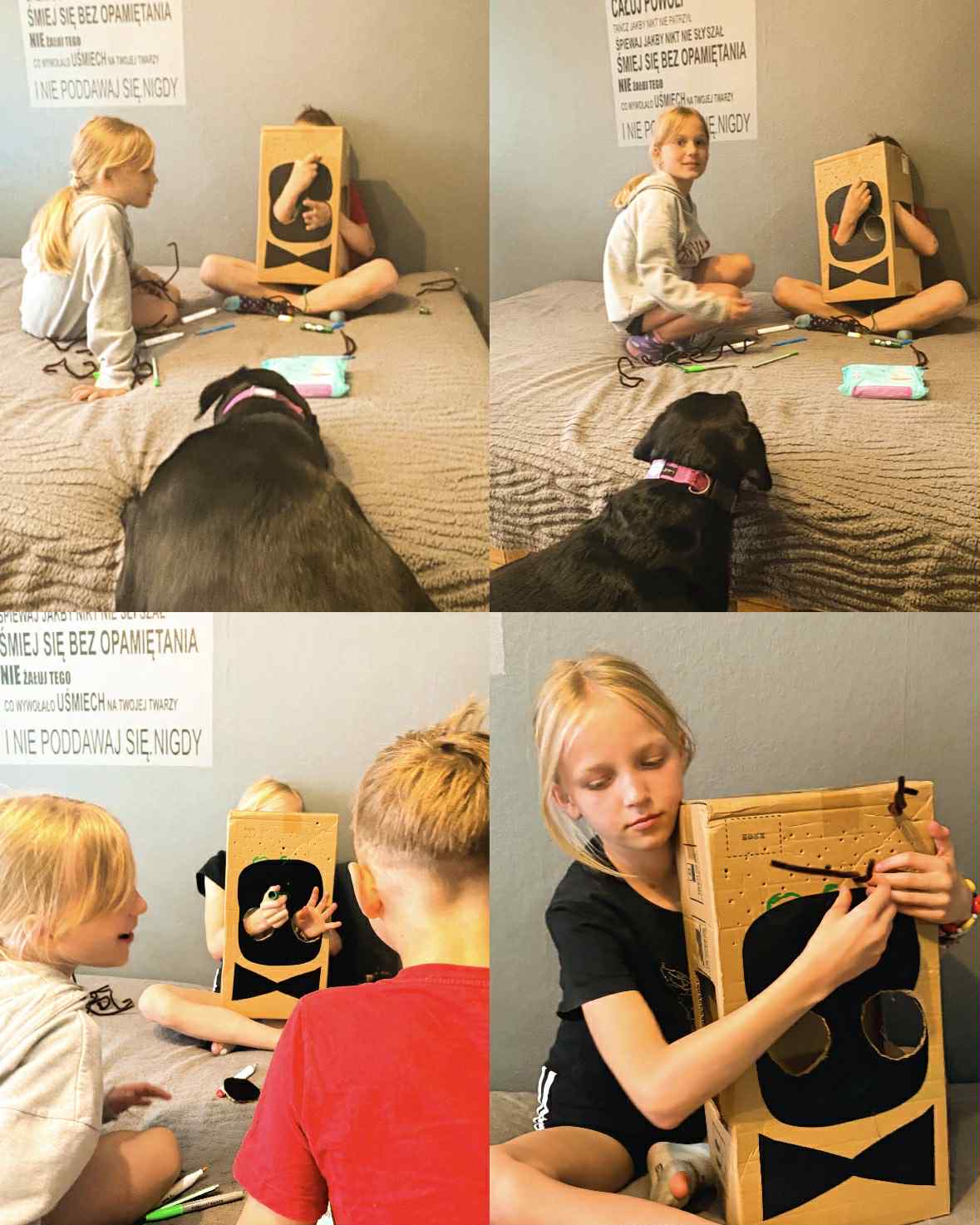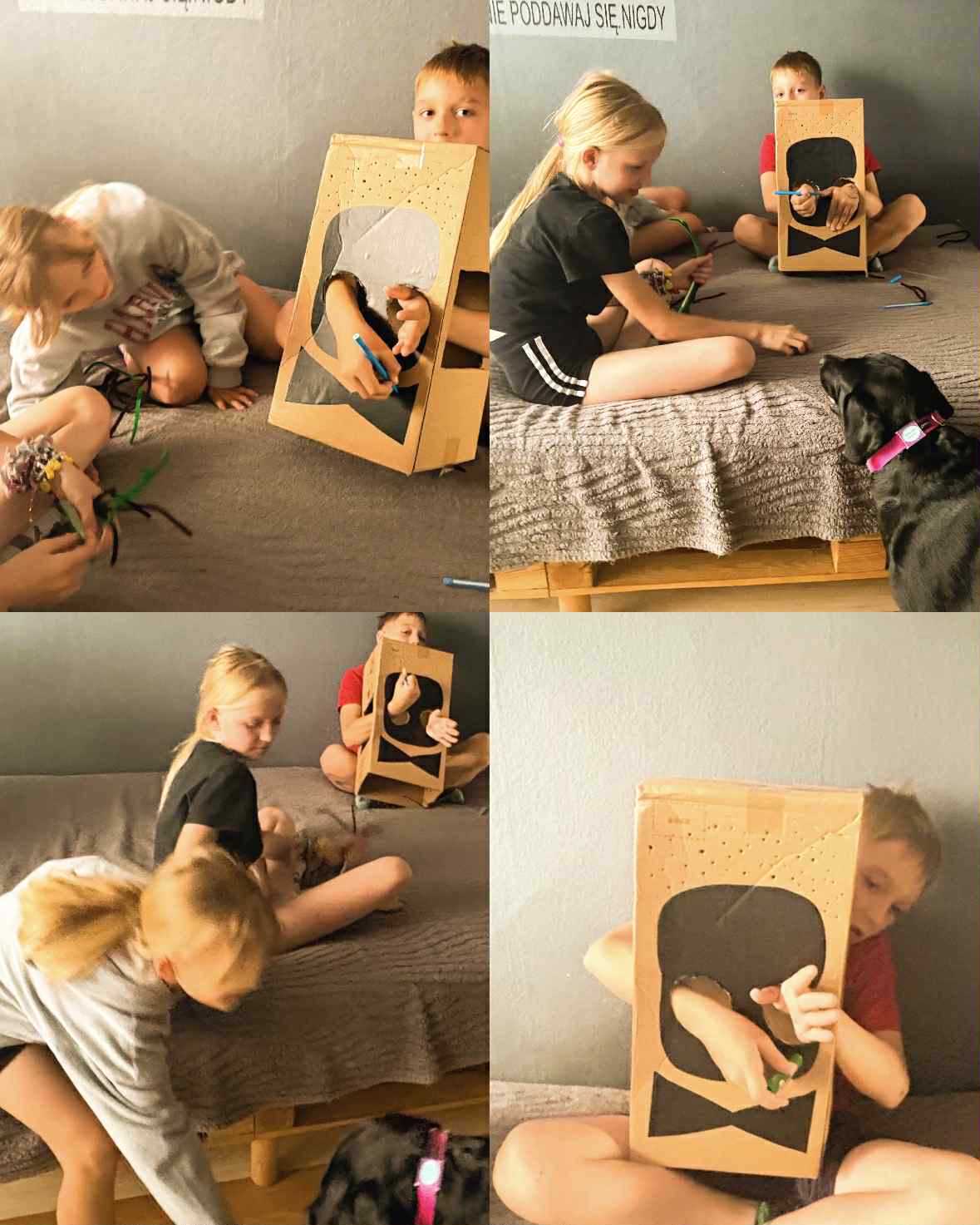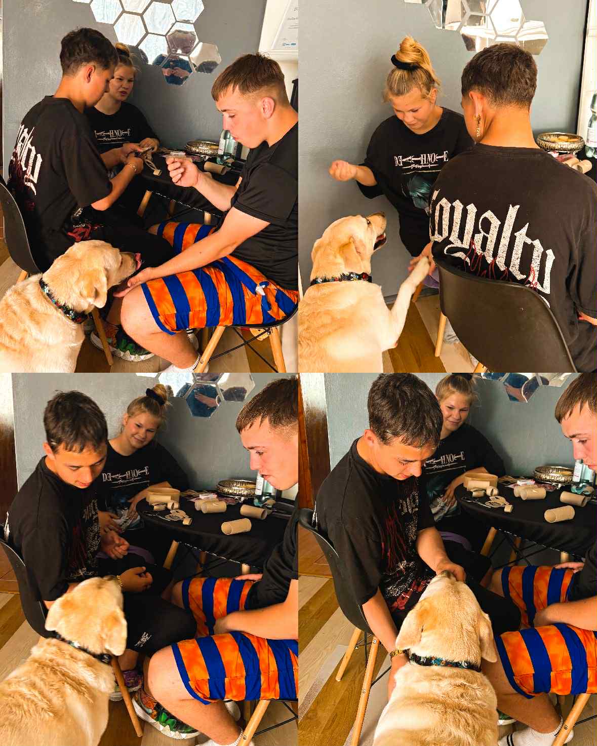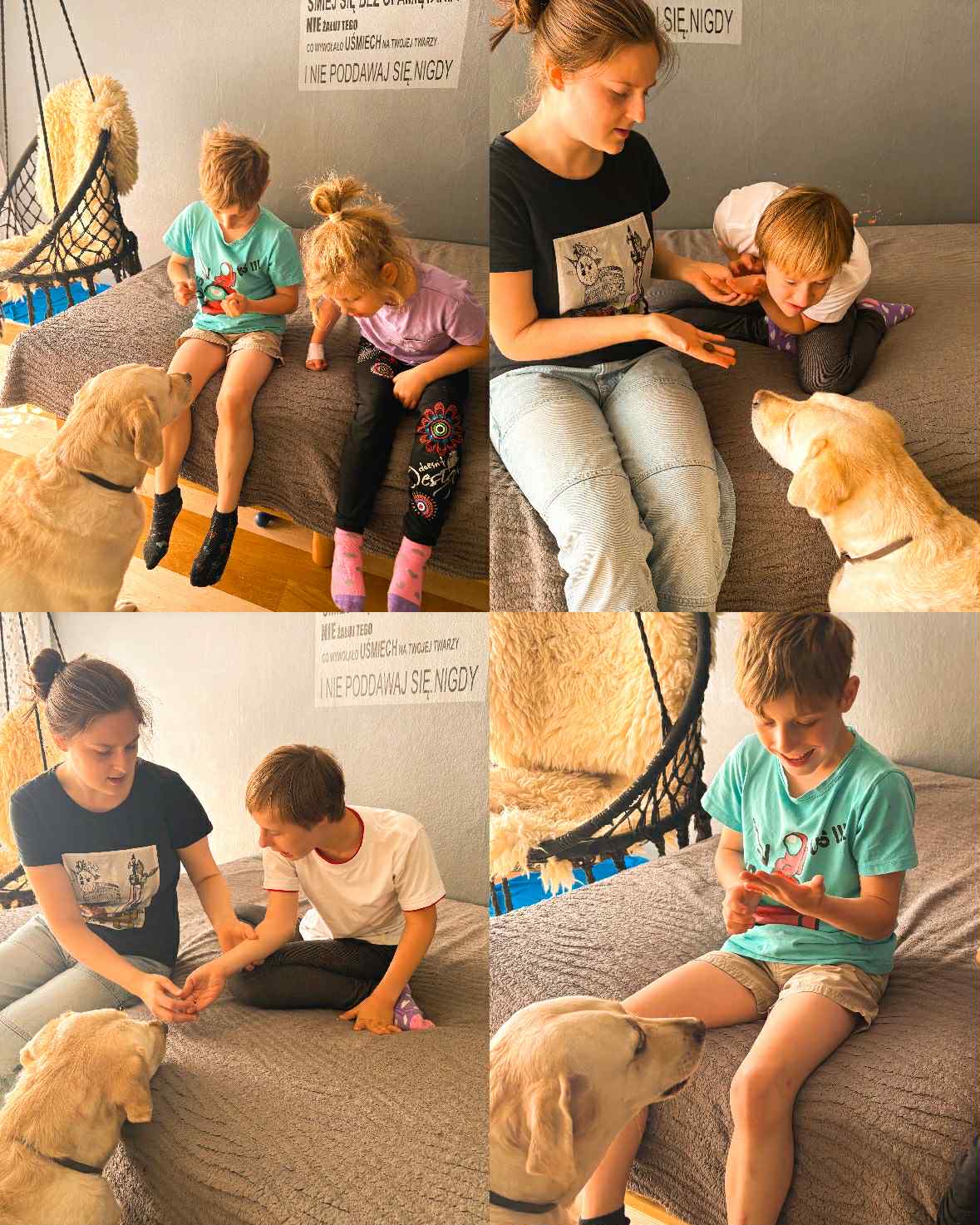 Dzisiejsza sesja dogoterapii miała charakter twórczo – terapeutyczny i była ukierunkowana na wspieranie procesów integracji sensorycznej, wzmacnianie kompetencji społecznych oraz stymulowanie motoryki małej poprzez działalność manualną. Uczestnicy wykonali indywidualne prace plastyczne w postaci łapaczy snów, co stanowiło element arteterapii wspierającej wyrażanie emocji oraz redukcję napięcia psychofizycznego.