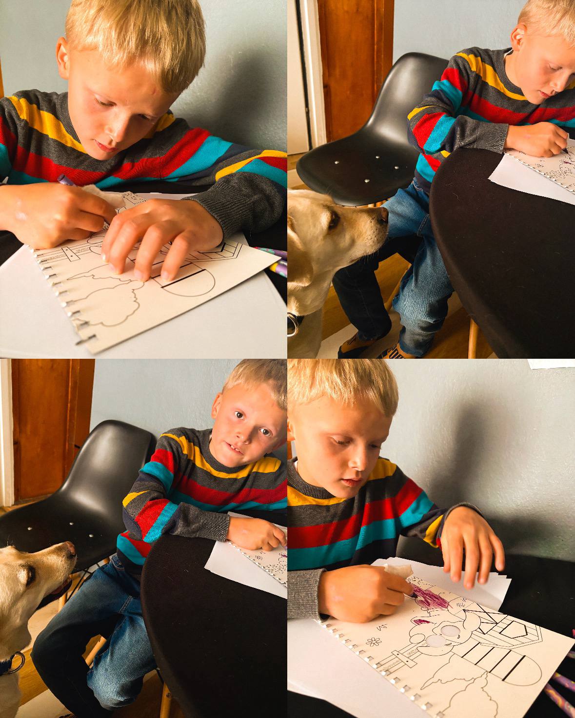 Dzisiejsze zajęcia dogoterapii miały na celu stymulacji funkcji poznawczych, rozwój umiejętności językowych oraz koordynacji wzrokowo – ruchowej z jednoczesnym wykorzystaniem pozytywnego wpływu kontaktu ze zwierzęciem na motywację, emocje i zachowania społeczne. Pies pełni funkcję facylitatora terapii – wzmacniał motywację dziecka do uczestnictwa, zwiększał poziom zaangażowania i koncentracji na zadaniu. Zwierzę było aktywnie włączane w ćwiczenia.