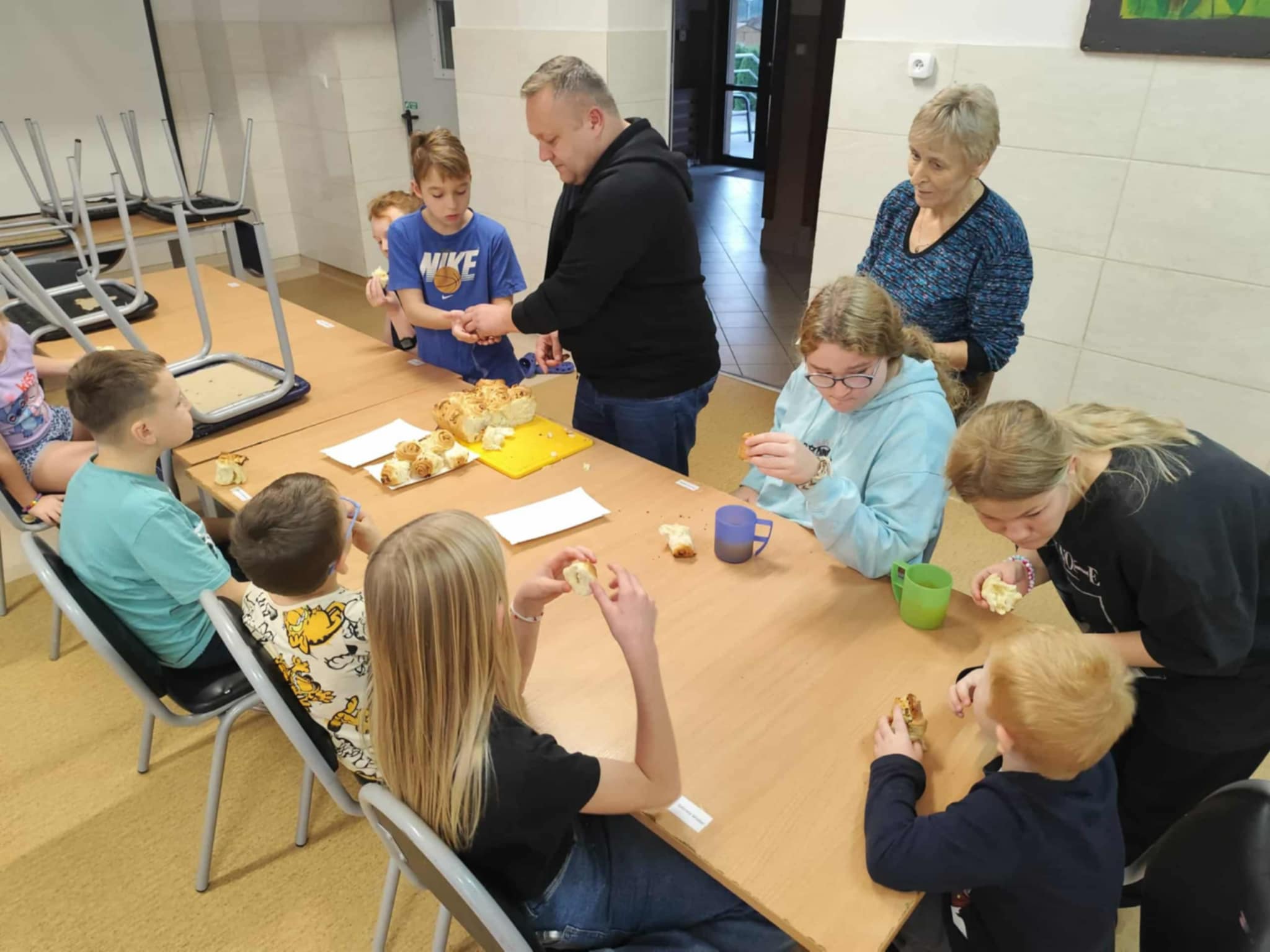 Wspólne pieczenie było nie tylko nauką praktycznych umiejętności, ale też doskonałą okazją do integracji, rozmów o tradycjach i wartości wspólnego stołu. Dzień zakończyła wspólna degustacja wypieków – każdy mógł spróbować swoich kulinarnych dzieł.